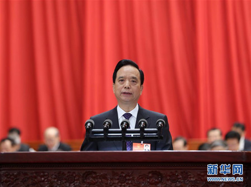 3月13日,十三届全国人大一次会议在北京人民大会堂举行第四次全体会议。受十二届全国人大常委会委托,全国人大常委会副委员长李建国向十三届全国人大一次会议作关于中华人民共和国监察法草案的说明。新华社记者 王晔 摄