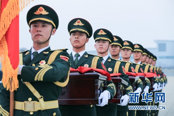 当天上午11时20分许,解放军空军一架专机平稳降落在辽宁沈阳桃仙国际机场,这架飞机当天从韩国仁川国际机场起飞回国,机上载有20位志愿军烈士的遗骸及相关遗物。专机进入中国领空后,两架战斗机全程护航,用空军特有的方式向志愿军烈士致敬。