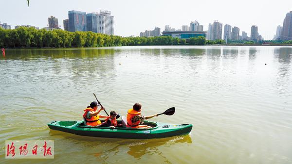 12日至13日,2018年洛阳市全民健身月皮划艇比赛在新区凌波湖水面举行。