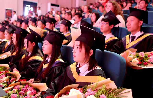 河南枫叶国际学校总校长修海英及加方课程校长Mr.Williamson代表全校师生对毕业生及家长表示热烈的祝贺,在致辞中,两位校长肯定了三年来每一位枫叶学子的努力,赞扬了他们勤奋、博学、进取、争先的枫叶精神,同时鼓励每一位毕业生“你们是中华文化的使者,是世界先进文化的传播大使。”