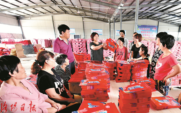 昨日,在孟津县横水镇铁楼村的手提袋加工扶贫车间里,“三新”讲习师为在此就业的群众宣讲脱贫政策和手提袋加工技术。