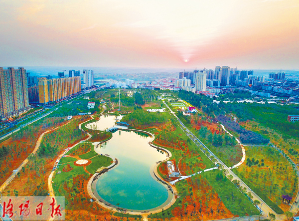 近日,在孟津县城提升改造后的河图公园内,人工湖碧波荡漾,周边树木郁郁葱葱,置身其境犹如徜徉画中。