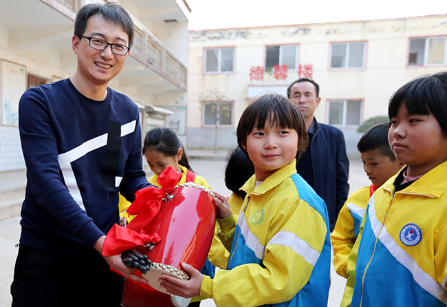 当天,包括大河报、映象网、洛阳综合广播、365bet足球联赛等在内的5家省市新闻媒体工作人员到宜阳县高村乡中心学校宣讲十九大精神,并为学校捐建腰鼓,以活跃乡村学校师生课余文化生活。